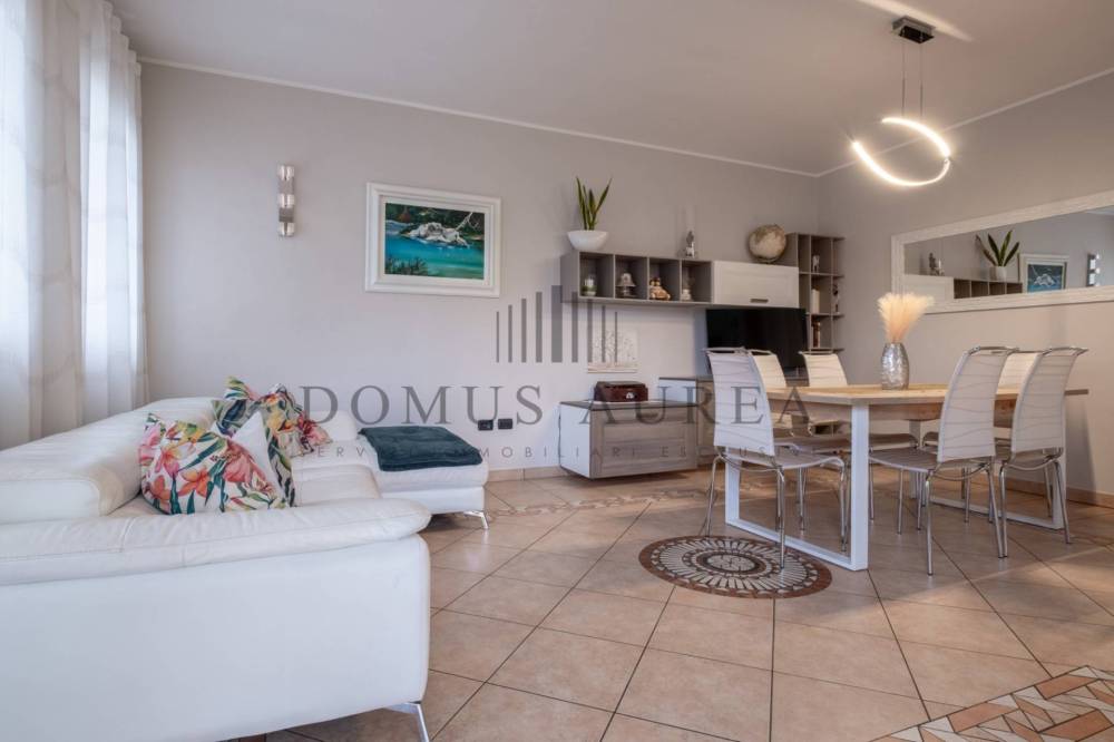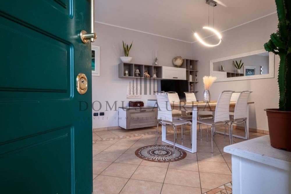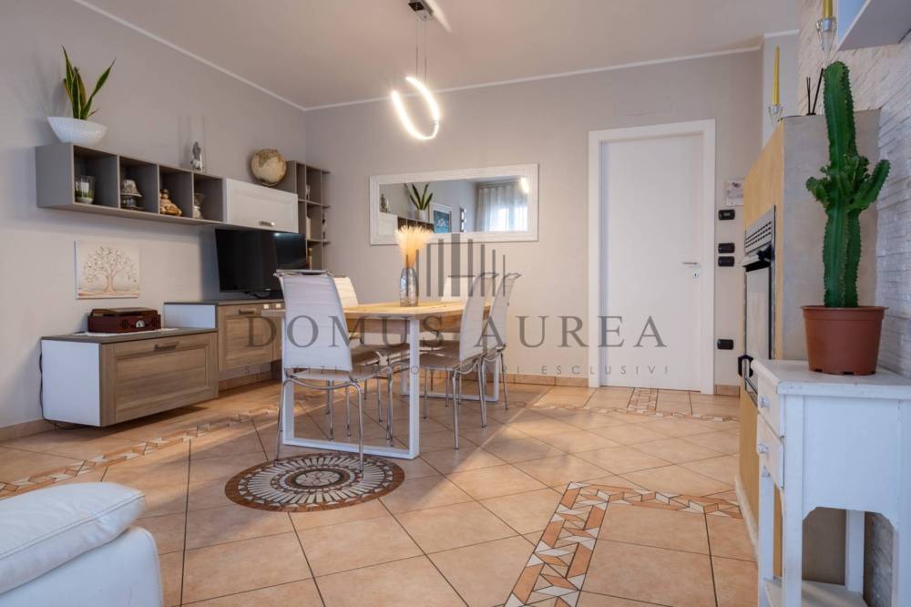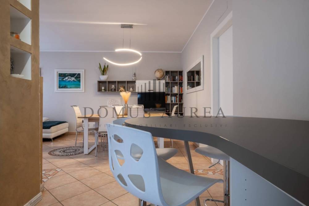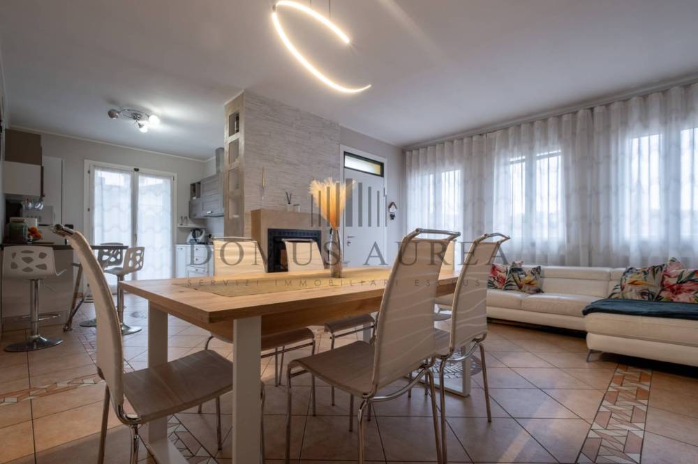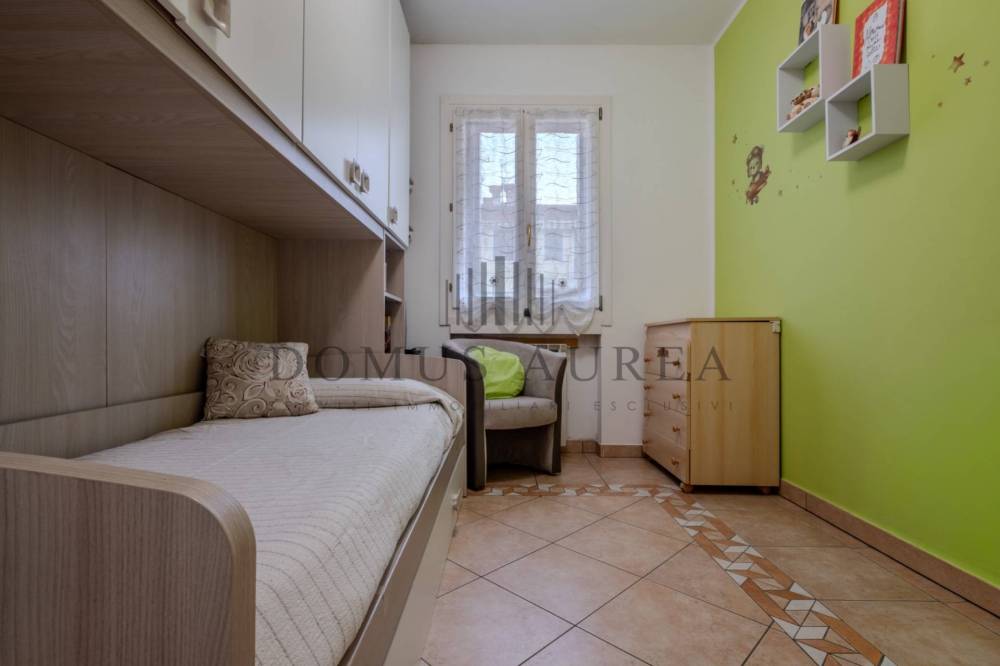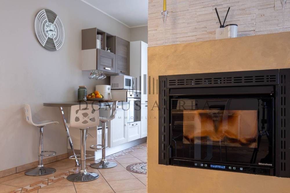 Limmobile si compone di tre camere da letto: una matrimoniale e due camere singole di cui una con affaccio su un terrazzino, due bagni, cucina abitabile con uscita su un ulteriore terrazzino, e soggiorno impreziosito da camino, elemento che valorizza lambiente living e ne aumenta il comfort.