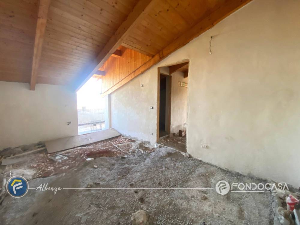 Labitazione si apre su un ampio soggiorno, cucina abitabile, due camere da letto, due cabine armadio, doppi servizi e terrazzo con splendida vista panoramica, da cui si può ammirare la Piana di Albenga ed il mare. È inoltre prevista la possibilità di realizzare un secondo terrazzo, ideale per momenti di relax allaperto.