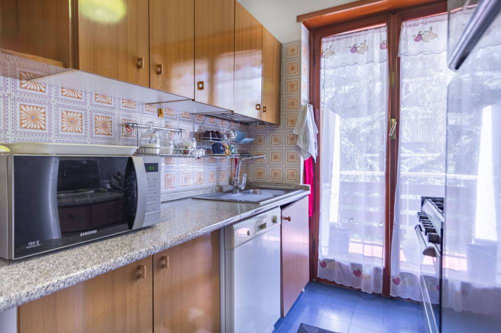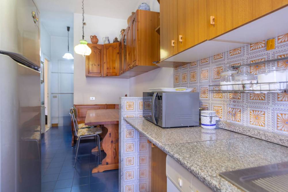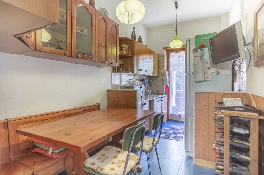 La cucina, di tipo abitabile e provvista di doppio accesso, si apre anchessa sul balcone, creando continuità e funzionalità tra gli ambienti.