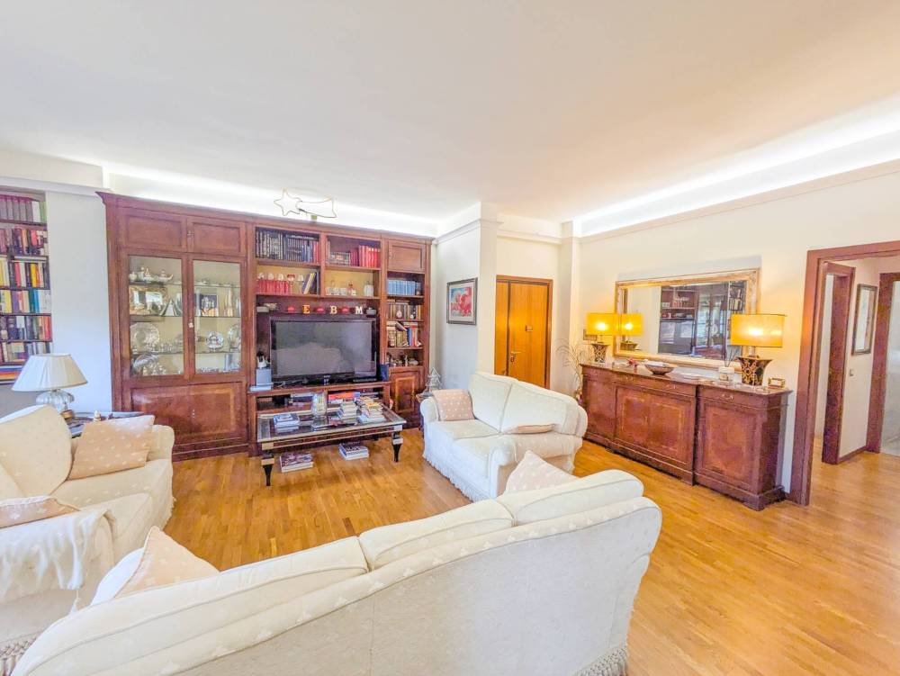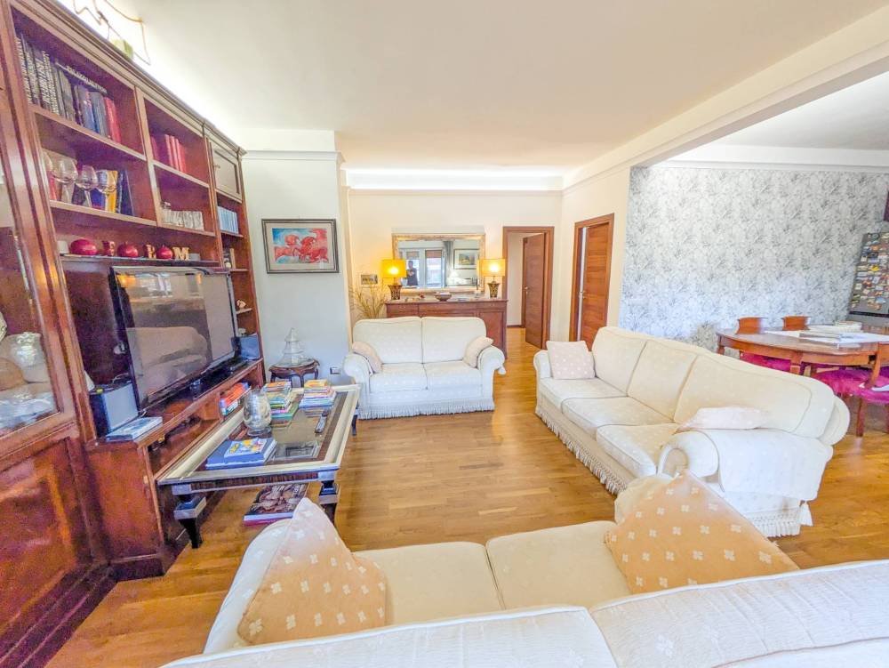 L' ampia zona soggiorno conduce, tramite una portafinestra, sul delizioso terrazzino di circa mq.8, dove è possibile cenare in tranquillità.