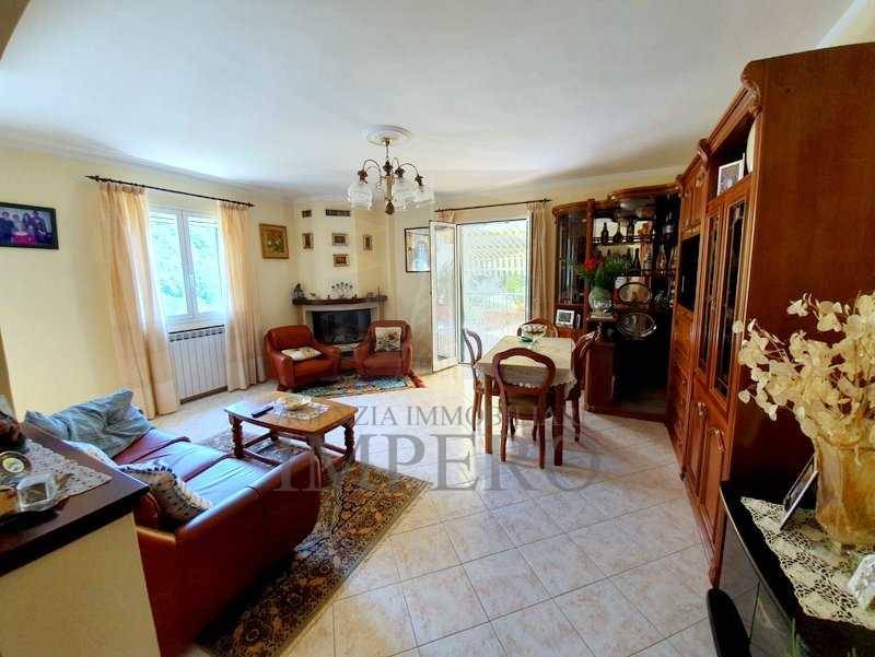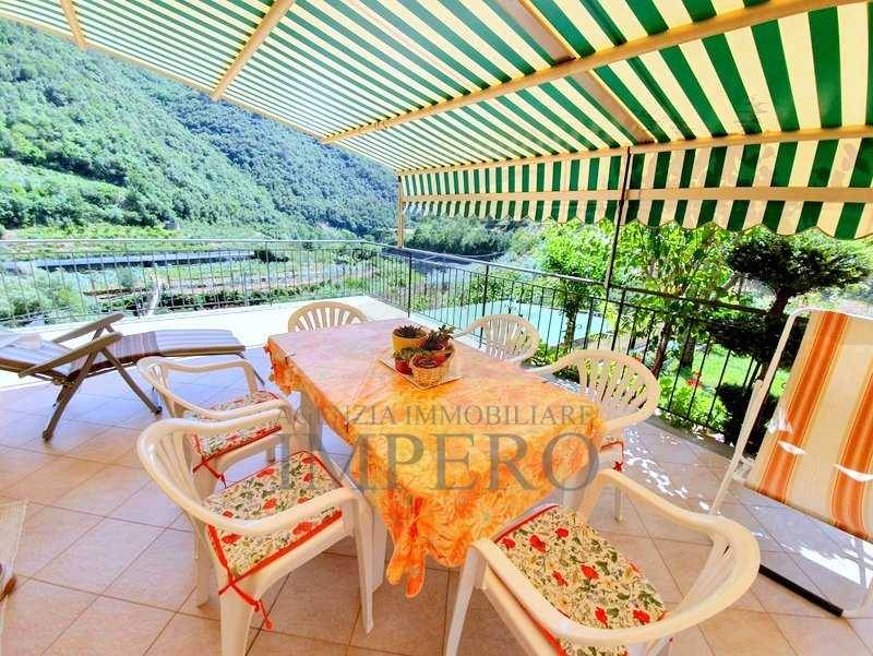 Rif. 21046 - Isolabona. Incantevole villa bifamiliare immersa nel verde, sviluppata su due livelli, per una metratura complessiva di 170 mq. Primo alloggio: ingresso in soggiorno, cucina abitabile, tre camere da letto e doppi servizi. Secondo alloggio: ingresso in soggiorno, cucina, camera e bagno. Terrazza di 150 mq, garage di 90 mq e giardino di 2900 mq.