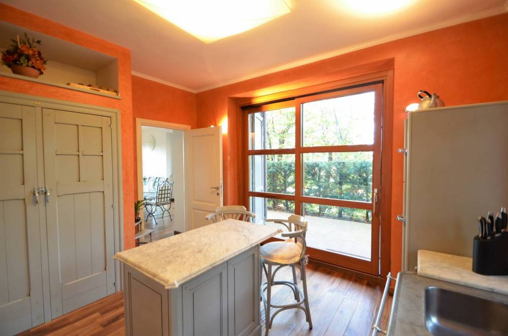Sempre al piano terreno si trova la "termo" cucina abitabile molto bella ed elegante anch'essa con porta finestra e con arredi in marmo, uno studio, un bagno, la lavanderia, un disimpegno e il locale tecnico con accesso esterno.