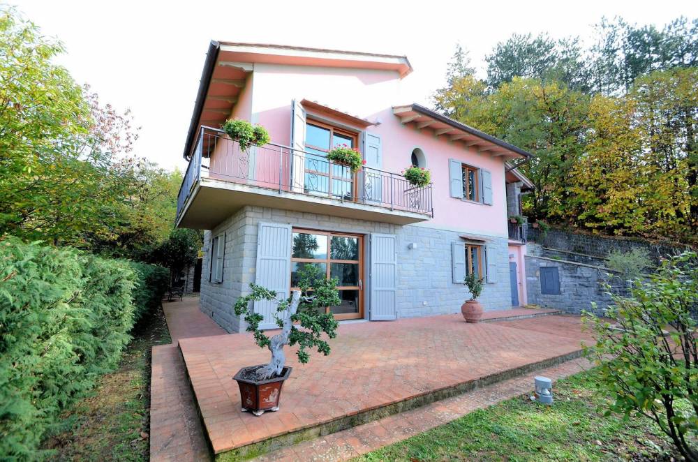 La villa, in posizione dominante, con bellissima vista sulle colline circostanti, si sviluppa su 2 livelli oltre a piano sottotetto ed è circondata da un parco di oltre 4.100 mq con alberi di castagno.