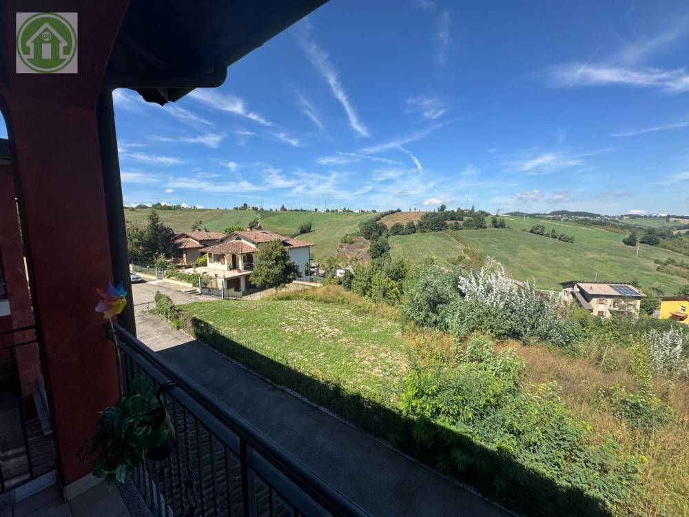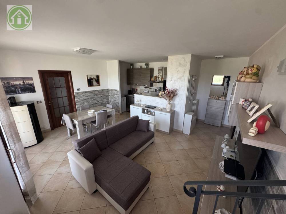 Pavullo zona ville: In contesto di recente costruzione proponiamo grazioso appartamento sito al piano secondo e disposto su 2 livelli così composto: ingresso soggiorno con zona cottura e balconcino coperto accessibile dalla zona con porta vetro scorrevole; reparto notte con camera matrimoniale ed un bagno. Al piano superiore vi si accede mediante scala a giorno dove troviamo la zona mansardata con tetto a travi a vista e vi sono altre 2 camere da letto ed altro bagno. Entrambe le stanze hanno accesso su un ampio terrazzino con vista. Completa il tutto il garage al piano terreno. Palazzina NON dotata di ascensore, riscaldamento autonomo con caldaia tradizionale e con stufa Idro.pellet.
