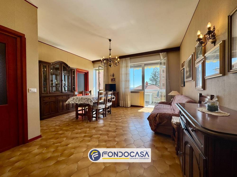 L'appartamento è composto da un ingresso su disimpegno, una luminosa sala con accesso al balcone vivibile, da cui si può godere di una splendida vista sul mare, un cucinotto, una camera da letto e un bagno finestrato.