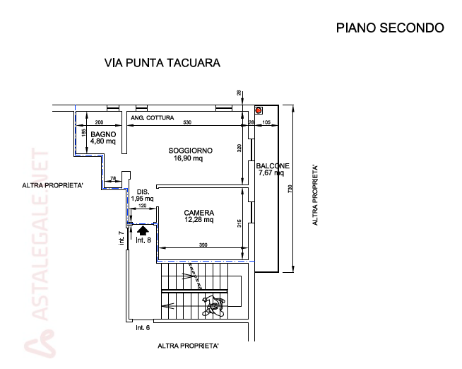 Nel condominio denominato Casa Rosada piena proprietà appartamento interno 8, posto al piano secondo, composto da: piccolo ingresso, soggiorno con angolo cottura, camera, bagno e balcone il tutto sviluppa una superficie commerciale di mq. 44,07.
