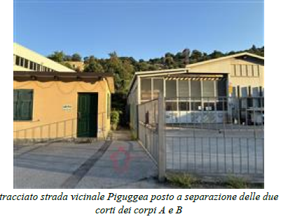 A. Capannone artigianale con ampia corte logistica pertinenziale recintata, il tutto della superficie commerciale di 470,50 mq., avente struttura portante costituita da pilastri e travature in acciaio e coperto con lastre ondulate in materiale plastico.