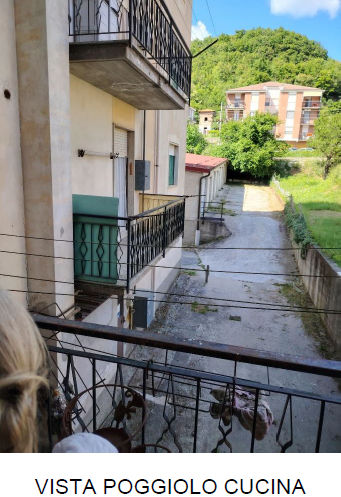 Dall'ingresso si accede ad un corridoio, che disimpegna tutti i vani dell'immobile; si hanno due camere, una a destra ed una a sinistra con accesso al poggiolo comune alla sala da pranzo; successivamente a sinistra si ha il bagno e a destra una terza camera con accesso ad un poggiolo aggettante su Via Roma; in ultimo, a sinistra si ha la sala da pranzo con angolo cottura, con accesso al poggiolo comune alla prima stanza.