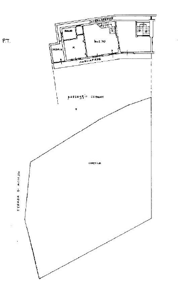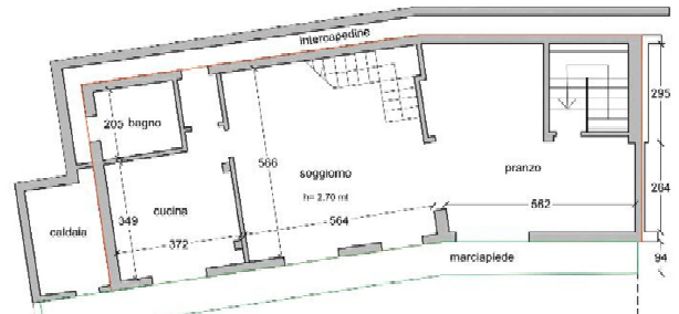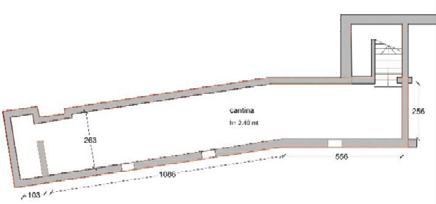 Essa si compone di tre piani di cui uno interrato adibito a locale cantina, accessibile dal piano terreno tramite una scala interna; un piano terreno-seminterrato, con accesso sul fronte sud-est, composto da un grande ingresso-sala con stufa a legna, una sala, una cucina abitabile e un bagno; sempre al piano terreno, collegato con l'intercapedine che corre controterra sul lato nord-ovest, trova spazio il locale caldaia, separato dall'abitazione.