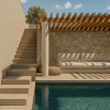 La distribuzione degli spazi, determinata dallorografia del terreno, sfrutta il naturale declivio del lotto di terreno per realizzare sul piano più alto, a quota campagna, unampia zona parcheggio con accesso diretto su strada. Il secondo livello intermedio viene destinato ad ombraio, solarium e piscina a sfioro, direttamente prospiciente al terzo livello inferiore, quota abitazione, in cui la tipica pinnata e gli spazi conviviali con cucina esterna creano ambiente per le sere destate.