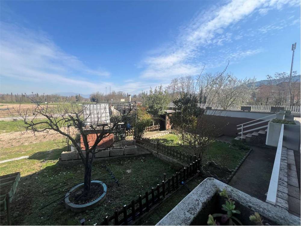 Ampio spazio esterno privato con orto, ideale per parcheggio, deposito o area verde.