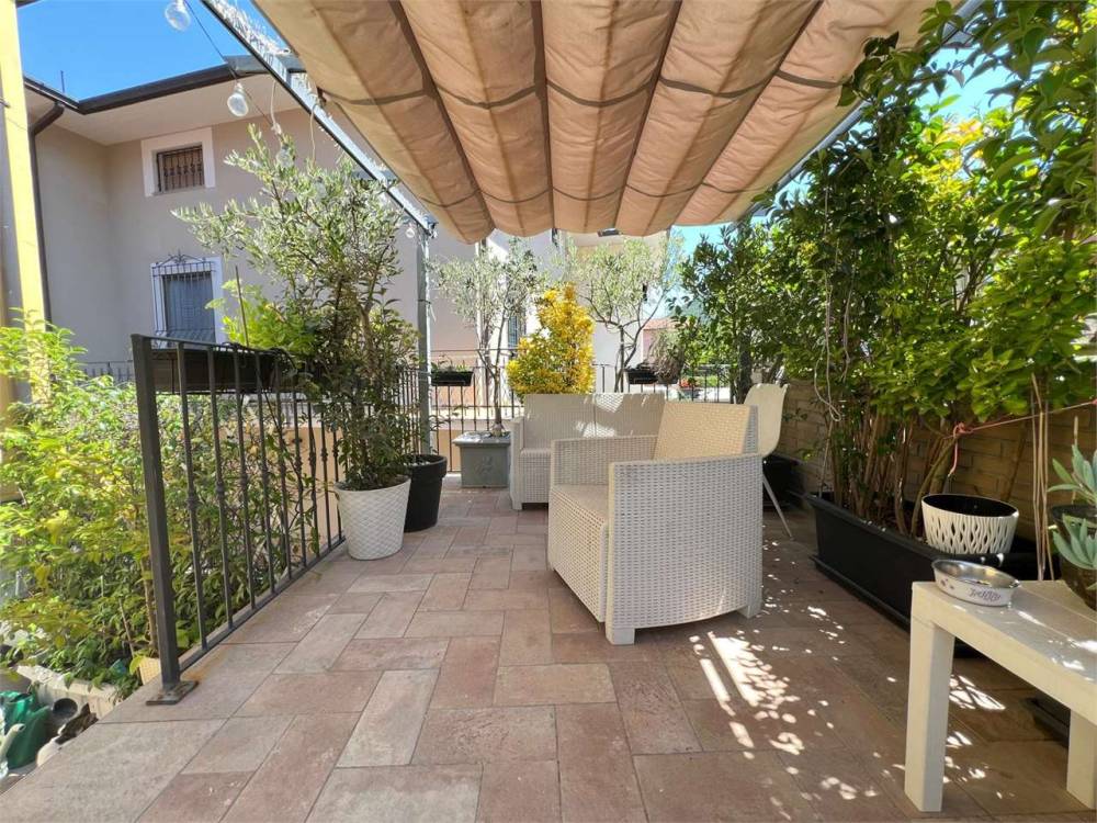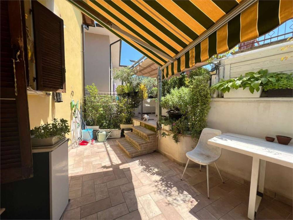 Piano Secondo: salotto, camera matrimoniale con cabina armadio, seconda camera matrimoniale, bagno e terrazzo dotato di tenda solare elettrica.
