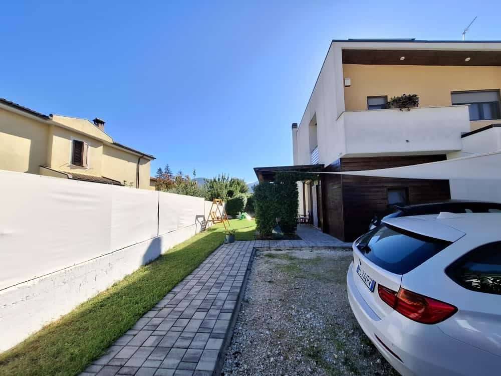 Spoleto, zona centrale, disponiamo di un' ampia e luminosa porzione di bifamiliare realizzata nel 2017, disposta su due livelli e così composta: grande salone con cucina a vista, studio (che puó essere adibito anche a camera in base alle proprie necessità), bagno e vano tecnico al piano terra; camera matrimoniale con bagno interno, due camere singole, ulteriore bagno, vano lavanderia e due balconi al piano primo. Portico esterno, corte e giardino di pertinenza dell' immobile.