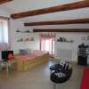 Dall' ingresso si sale al 1° piano costituito da cucina soggiorno molto luminosa , stufa a legna con scambiatore di calore , camera matrimoniale, bagno. Tramite scala in legno si sale al piano superiore costituito da un ampio mansarda con soffitto con buona coibentazione e travi in legno restaurati.