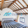 Facendo ingresso dal giardino verso la balconata che dà accesso al primo corpo abitativo che misura circa 450 mq ed è disposto su 3 livelli, più piano seminterrato con garage, e dispone complessivamente di 6 camere, 4 bagni, salone di ingresso e cucina abitabile, più locali tecnici. Mentre il secondo corpo abitativo, di mq. 200 circa, rifinito con pietre a faccia vista e legno anche all'interno, dispone di ingresso-soggiorno, cucina abitabile e bagno al piano terra, e al piano primo, collegato da elegante scala di design, 2 camere e bagno. Entrambe le abitazioni dispongono di garage, ed esternamente troviamo 3 locali ad uso rimessa/deposito, ricostruiti anch'essi preservando il classico stile del casolare marchigiano.
