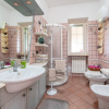 L'abitazione principale si compone da un ampio e luminoso Living, tre camere da letto matrimoniali, studio, cucina abitabile e doppi servizi, tutte le stanze affacciano su un grande giardino, rendendole così, molto luminose.