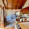 Tramite scale interne di legno massiccio si accede al primo piano dove troviamo la cucina con soggiorno ed un balcone, la camera da letto matrimoniale con anch'essa un balcone.