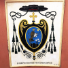 Lo stemma araldico, riprodotto sulla volta d’androne del Palazzo Menditto, rappresenta un leone rampante che cinge una corona in campo azzurro, su cui si staglia una stella a cinque punte. Il leone regge un libro aperto ed un rametto di ulivo. Poggia su tre spuntoni di roccia dai quali germoglia un rametto fiorito. Il tutto è sormontato da una croce e dal cappello vescovile.
