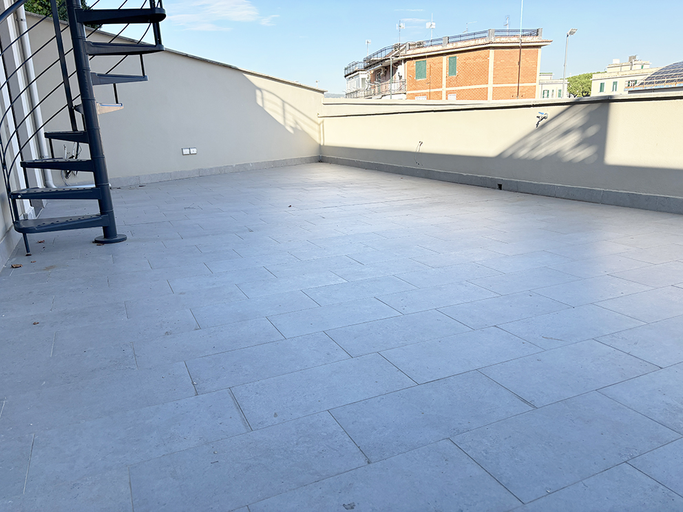 la scala interna conduce al primo piano composto da n° 2 camere da letto e n° 1 servizio arredato e con doccia; entrambe le camere hanno accesso ad un ampio terrazzo di 60 mq, dal quale, tramite una scala a chiocciola, si accede al piano superiore, dove troviamo un ulteriore terrazzo di 50 mq anch’esso fornito di allacci luce, acqua e gas.