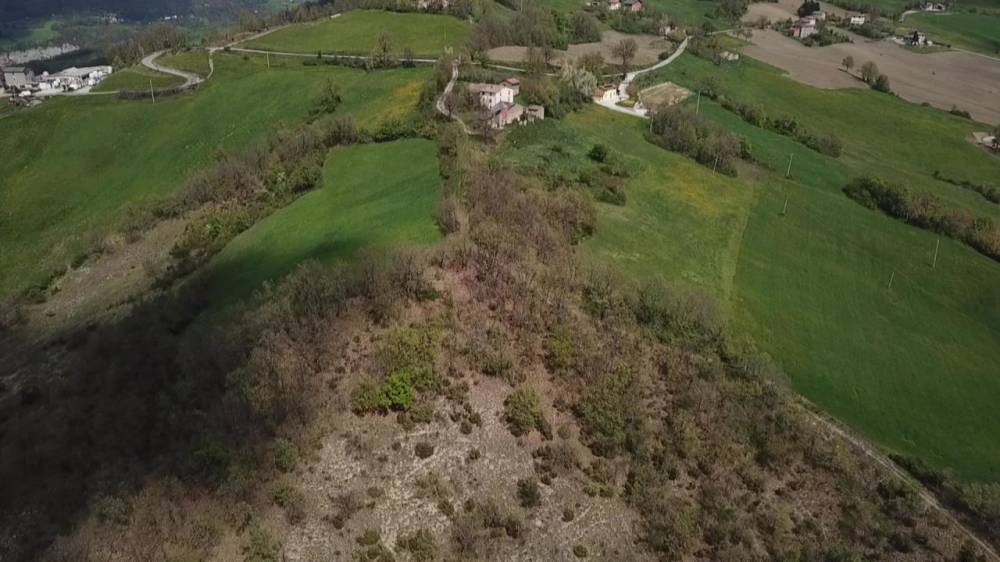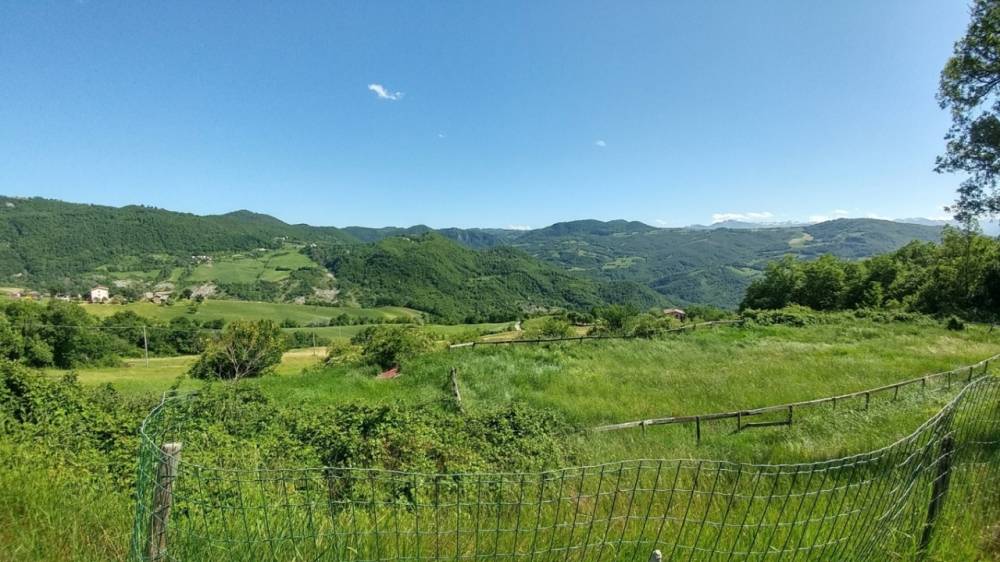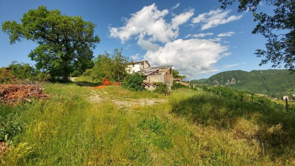 Rosola di Zocca: in posizione dominante sulla valle del Panaro vista Cimone, fondo rustico di circa 6 ettari con fabbricati (due abitazioni, due stalla_fienile) da recuperarsi e collabenti. pozzo di falda.