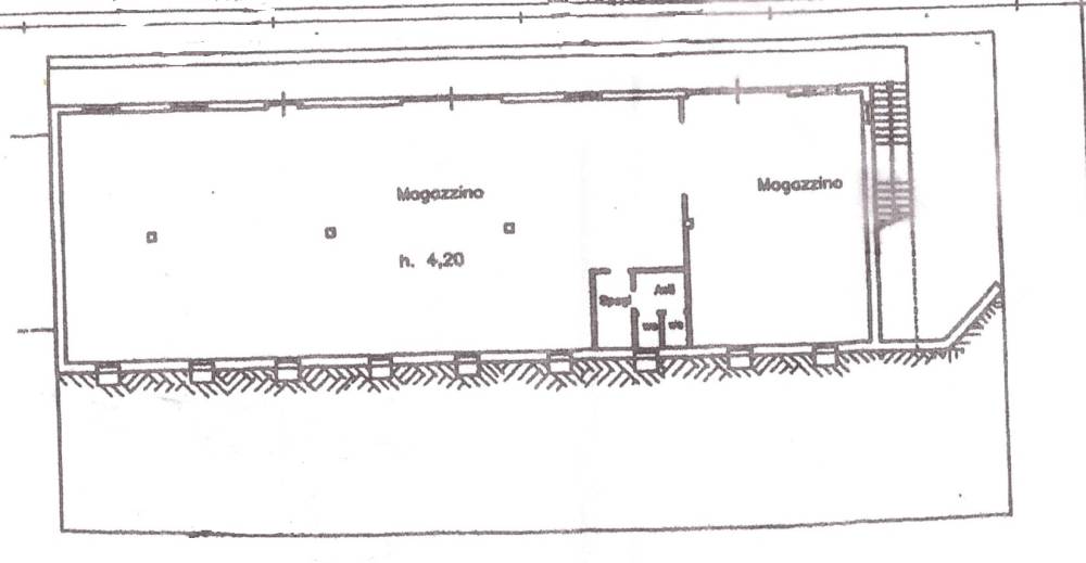 Il capannone è composto da un ampio spazio per lo svolgimento dell'attività con altezza interna utile di 4,30 metri, è servito da due entrate carrabili, ha un ufficio, un magazzino e un doppio bagno con spogliatoio.