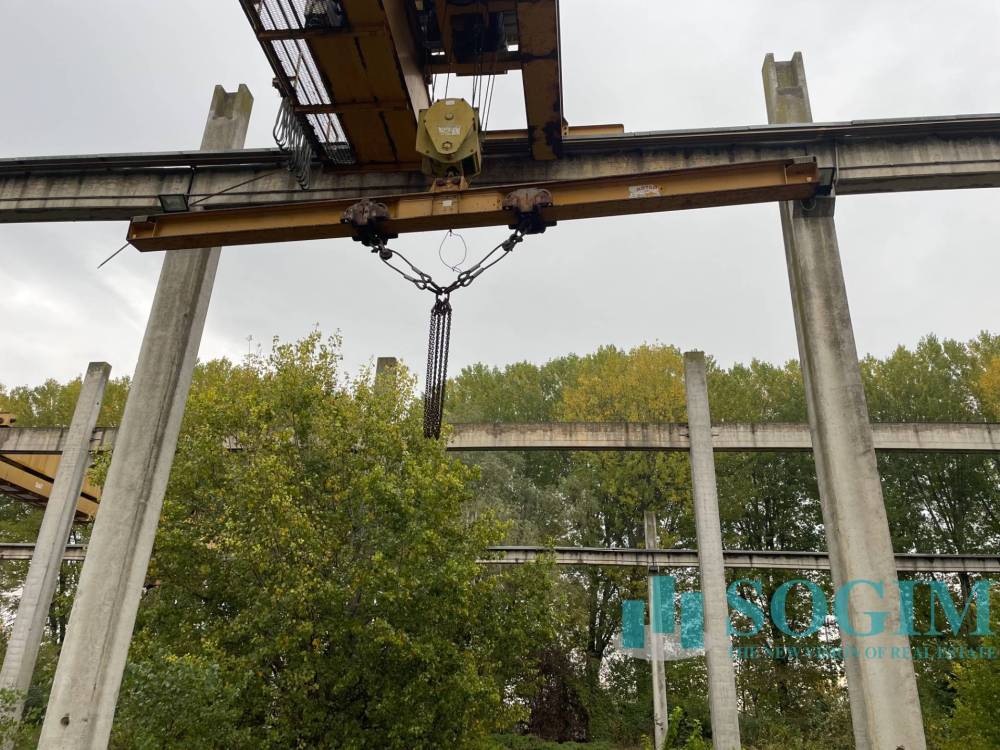 Attualmente sul terreno insistono una serie di pilastri prefabbricati a formare quello che sarà, una volta ultimato, un capannone di superficie pari a 4185 mq con altezza 8 mt sotto trave. Sono attualmente presenti due carriponti da 15t l'uno.