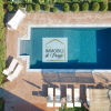 La piscina, che si accomoda tra la terrazza della casa padronale e la stalla, è un angolo di totale relax: riservata e affacciata verso i monti, gode della cornice del roseto e di spazio per il riposo sia sulle sdraio a bordo vasca che sotto unelegante pergola.