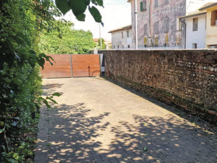 Appartamento al piano terra con annessa corte esclusiva di 443 metri quadri catastali autorimessa al piano primo sottostrada facenti parte di un fabbricato in condominio situato in Comune di Trevignano (TV), frazione Falzé in via Gioacchino Rossini. Abitazione composta al piano terra da un ingresso, una cucina-soggiorno-sala da pranzo, corridoio, due camere da letto e due bagni; al piano primo sottostrada da garage, cantina e magazzino.