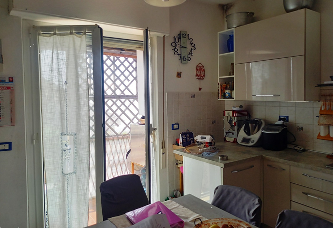 Appartamento situato ad Albenga (SV), è collocato al primo piano ed internamente è composto da un soggiorno, una cucina, un corridoio, due bagni, tre camere da letto, un terrazzo con veranda e un giardino di 35mq.