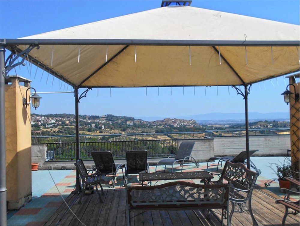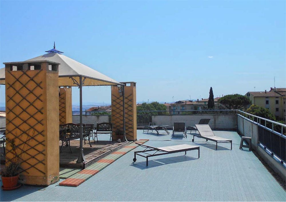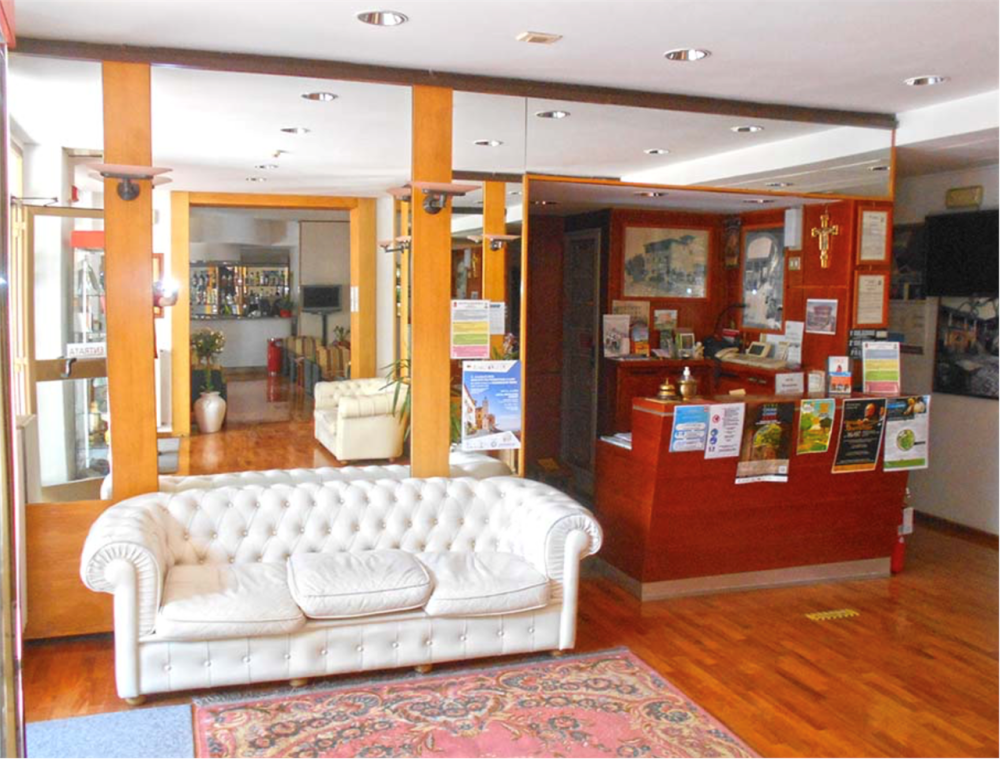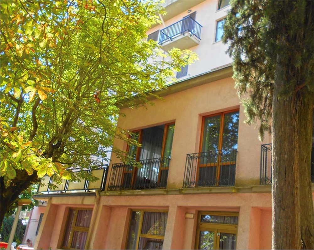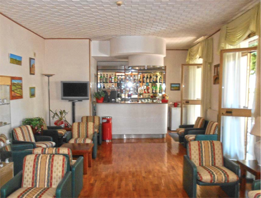 Albergo con giardino e parcheggio sul retro situato a Chianciano Terme (SI) in viale Guido Baccelli. Fabbricato composto al piano secondo seminterrato da centrale termica con accesso indipendente; al piano primo seminterrato da cucina con accessori, sala da pranzo, sala televisione, lavanderia ed accessori, disimpegno, due camere da letto con bagno e vano con depositi idrici ed accesso autonomo dall'esterno; al piano terreno da accoglienza, soggiorno, bar, due camere da letto con bagno laterali rispetto all'accoglienza e disimpegno su cui si affacciano sette camere da letto con bagno; ai piani primo e secondo la composizione è identica e consiste in quindici camere da letto con bagno, oltre ad accessori (ripostiglio e bagno di servizio); al piano terzo da dodici camere da letto con bagno privato, oltre accessori e soprastante lastrico solare.