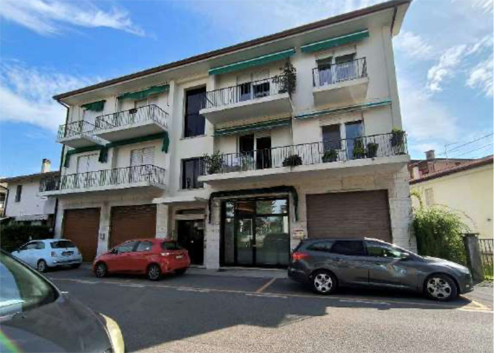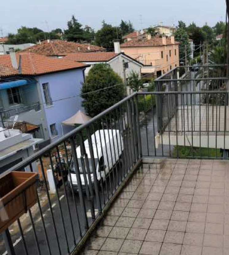 Appartamento al secondo piano con annessa autorimessa situato a Treviso (TV) in via Goldoni, composto da un ingresso, un soggiorno con poggiolo, cucina con poggiolo, disimpegno, prima camera da letto matrimoniale con poggiolo, due ripostigli, seconda camera da letto matrimoniale con poggiolo e bagno e ripostiglio privato al piano terra.