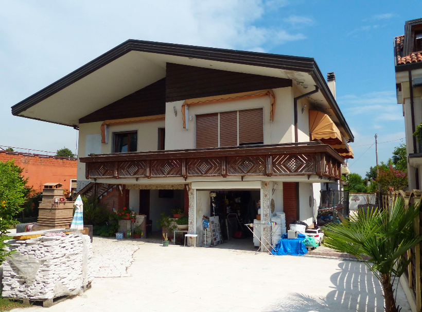 Casa singola dotata di autorimessa e scoperto esclusivo che si estende su due piani, sita in comune di Jesolo (VE) in via Piave Vecchio. L'abitazione al piano terra presenta un portico, una taverna, una cucina, un wc, una centrale termica, disimpegno ed uno studio. Al piano primo si trovano un ingresso, un soggiorno, tre camere, un bagno, un corridoio, una cucina ed il vano scala che collega il piano terra al primo; vi è inoltre una terrazza a servizio principalmente del soggiorno.