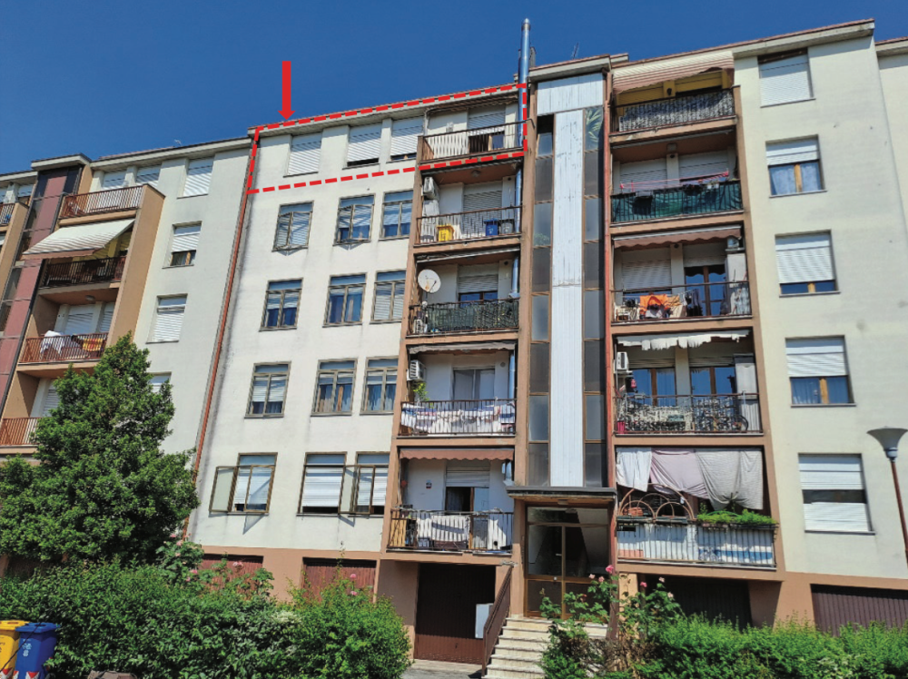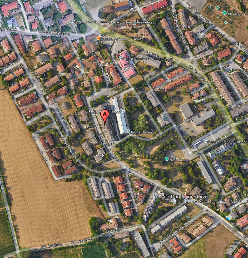 Appartamento al piano quinto con annessa autorimessa al piano terra facenti parte di condominio denominato "Stella" (ex condominio "Primavera") situato in Comune di Treviso (TV) in via Don Luigi Sturzo, composto da un ingresso, una cucina, soggiorno-sala da pranzo, disimpegno, due camere da letto, un bagno ed un poggiolo.