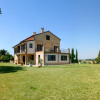 Vanta un uliveto, alberi da frutto e distese di campi coltivati. Il panorama circostante, fatto di colline con colture diverse tipiche del paesaggio rurale marchigiano e montagne in lontananza, può essere ammirato da tutti i lati della casa.