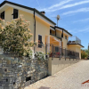 La proprietà è circondata da un terreno di circa 1200 mq. con un ampio giardino, in parte terrazzato, con orto e zone parcheggio. Sono presenti gli scarichi per l’eventuale costruzione di una piscina.