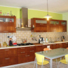 - al primo troviamo la zona giorno composta da spazioso living room luminoso con termocamino e cucina abitabile entrambe pavimentate in gres porcellanato;