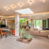 Finiture: porte interne Rimadesio, impianto di video sorveglianza ad infrarossi, aria condizionata, domotica, riscaldamento a pavimento sezionato in zone, pannelli solari, filodiffusione interna ed esterna, pavimentazione e rivestimenti in pietra ed elementi in corten.