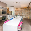 Piscina illuminata con area solarium dotata di impianto di filodiffusione. Una comoda pergola automatizzata copre la zona pranzo/cena bordo piscina con area BBQ.