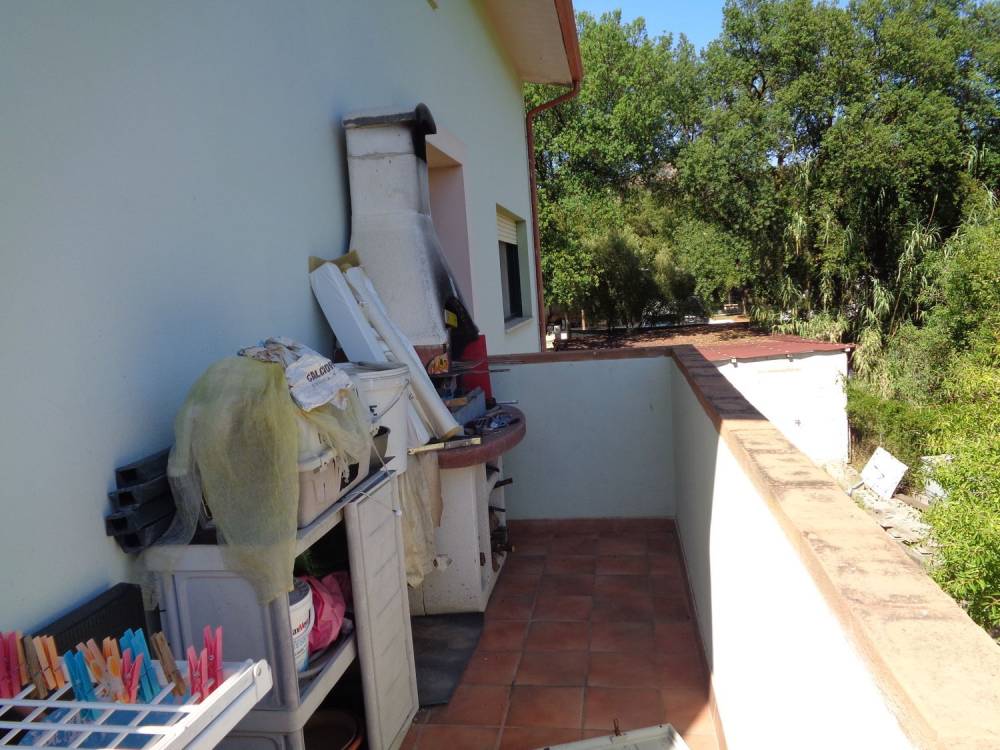 Un'ampia balconata abbraccia l'immobile su due lati dove è presente un barbecue.