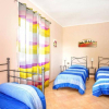 ampia cucina/sala da pranzo, una camera con due letti singoli, un bagno e una camera più grande con tre letti.