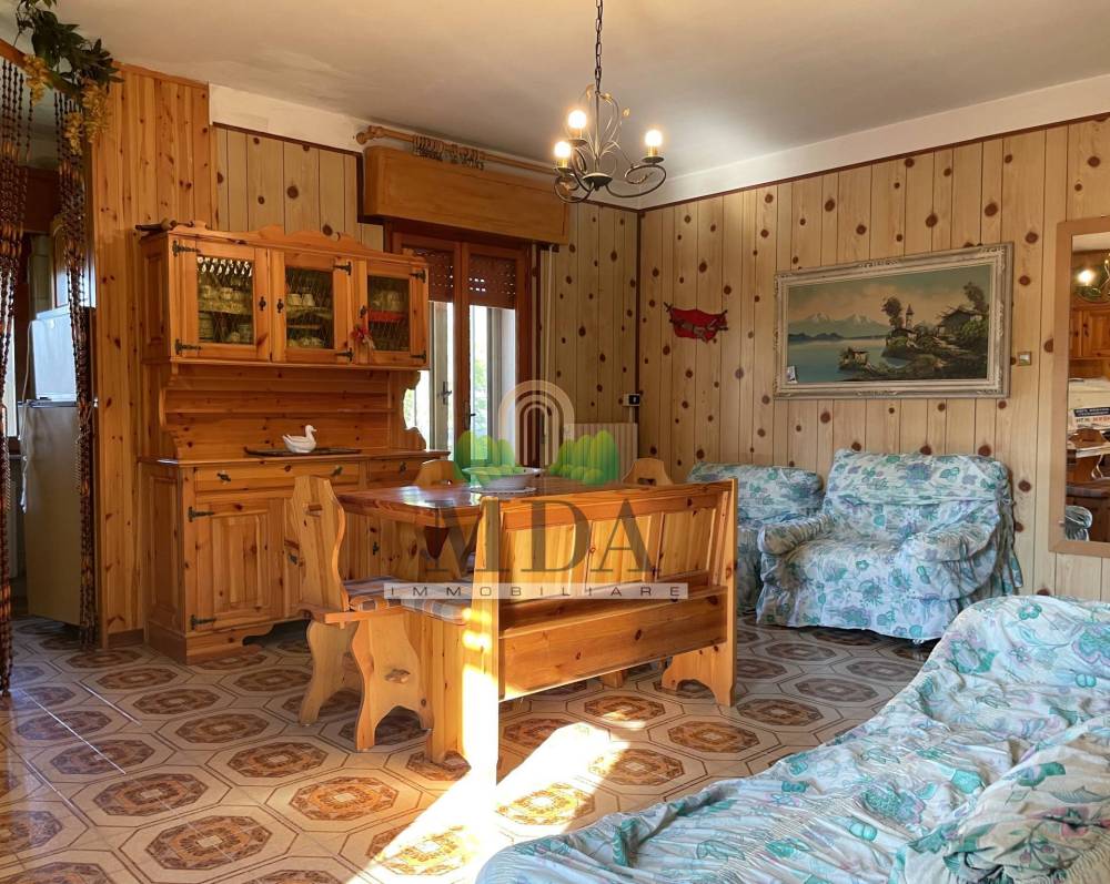 L'appartamento, 85 mq. circa è posto al secondo piano ed è composto da: ingresso, soggiorno con camino, cucinotto, disimpegno, camera matrimoniale, due camere singole, bagno con doccia e finestra.