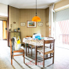 L'ingresso conduce ad un ampio e luminoso soggiorno che affaccia sul giardino, proseguendo incontriamo da prima una sala da pranzo e un cucinotto, percorrendo poi 4 gradini si accede alla zona notte leggermente sollevata dal piano giorno composta da due grandi camere e bagno.