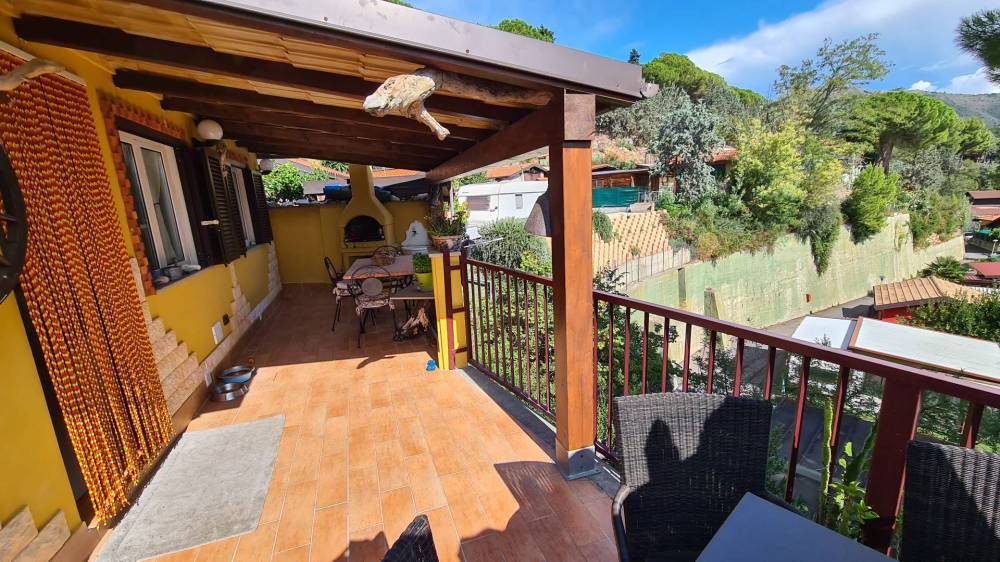 All'esterno, nella corte privata e cinta da mura, troviamo posto per unauto, e gradevoli spazi per pranzi e cene all'aperto, sotto la graziosa tettoia, già attrezzata con pratico barbecue, godendo della suggestiva vista su Albenga.