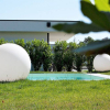L'ampio giardino su 4 lati consente di realizzare una piscina a sfioro (a parte dal prezzo, con spiaggetta immersa nell'acqua, gradinata per accedervi, solarium piastrellato ed illuminazione notturna). I piacevoli porticati consentono deliziosi momenti di relax all'aperto.