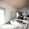 La zona living open accoglie il salotto e la cucina godibili anche dal giardino grazie alle ampie vetrate scorrevoli.