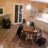 ingresso su salone con parete cottura,scala in muratura con rivestimento in cotto al piano terrazzo attrezzato; al secondo livello due camere, cabina armadio e bagno, corridoio con scala in legno di mogano che porta al locale sottotetto con servizio. Termoautonomo a gas metano oltre stufa a caminetto a pellets.