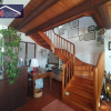 Una meravigliosa scala in legno conduce al piano superiore dove è presente il bagno con doccia.