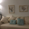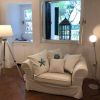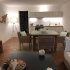 Ingresso con soggiorno, divano letto, cucina attrezzata in stile moderno.
