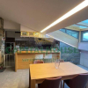 La zona giorno è composta da doppio salone con cucina a vista, un ambiente ampio ed interamente dotato di luci a led con comandi a distanza e impianto Dolby surround.