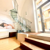 Il locale si estende su una superficie totale di 90 mq. e si compone di due ampi vani disposti su due livelli con accesso interno tramite una scala in vetro e acciaio, e bagno completo di sanitari e accessori.